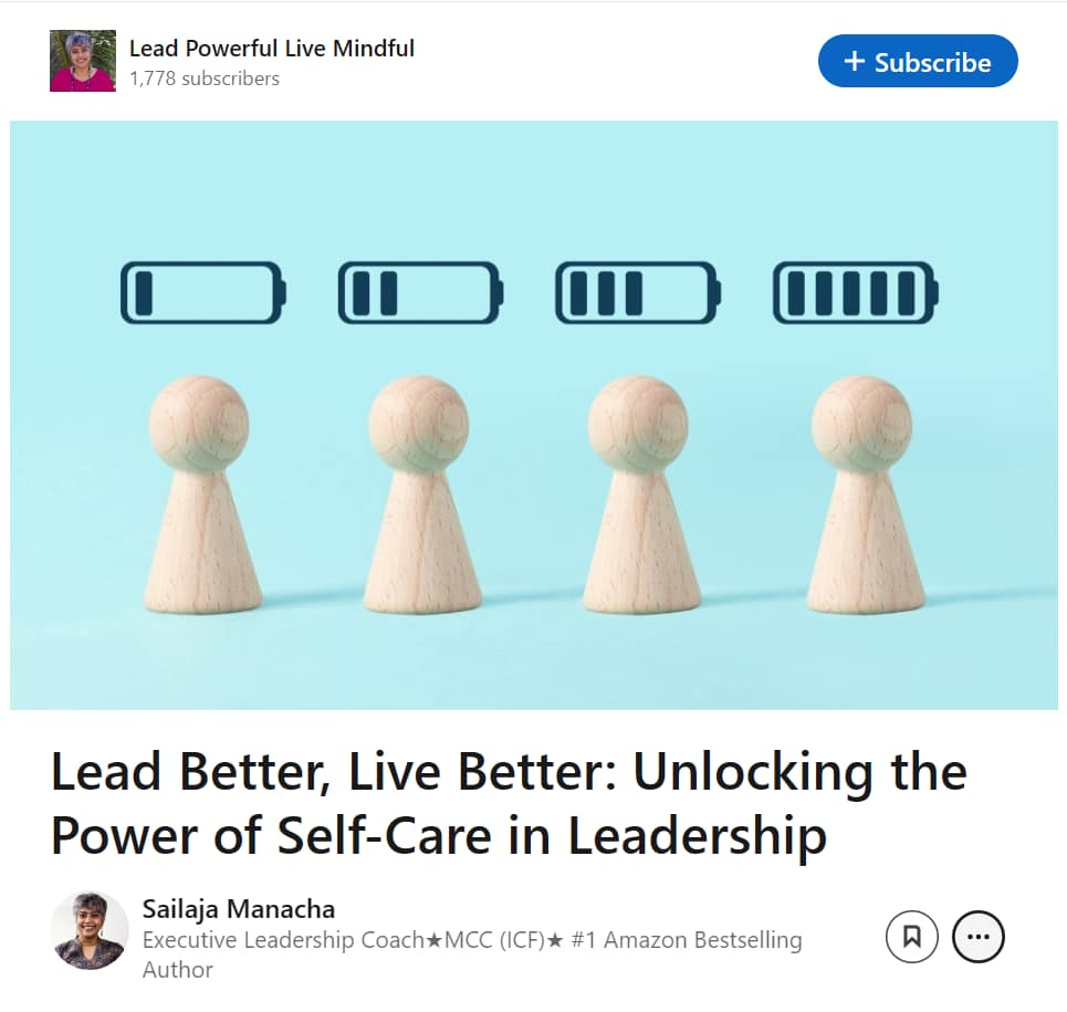 Read Sailaja Manacha’s LinkedIn blog on Power of self-care in Leadership: